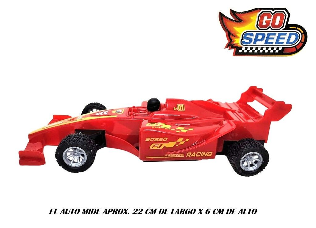 VIVI LA PASION Y EMOCION DE LA F1 CON ESTOS AUTOS DE CARRERA A CONTROL REMOTO DE LA LINEA GO SPEED. EL AUTO DE CARRERA MIDE APROX. 22 CM DE LARGO X 6 CM DE ALTO. EL AUTO DOBLA A AMBOS LADOS Y VA PARA ADELANTE Y PARA ATRAS. REQUIERE 3 PILAS AA (NO INCLUIDAS). EL CONTROL REMOTO REQUIERE 1 PILAS AA( NO INCLUIDAS). MEDIDAS DEL PACKAGING: 29X21X6CM. MARCA: GO SPEED. EDAD: + 3 ANOS.