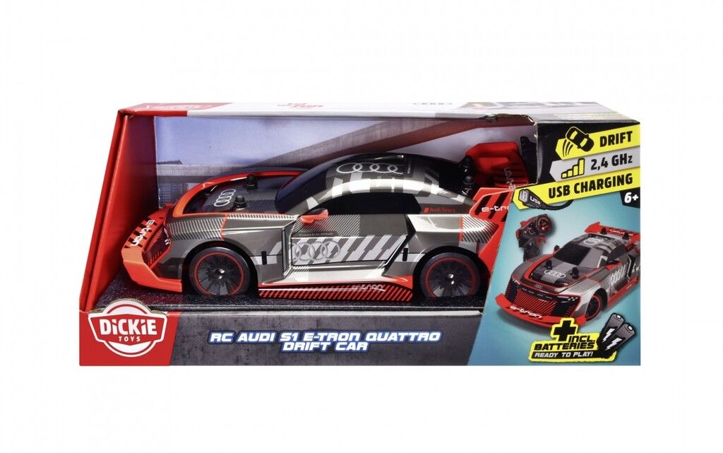 RC AUDI S1 ??E-TRON QUATTRO DRIFT CAR (30 CM) ? COCHE RC CON RC DE 2 CANALES (24 GHZ) Y TRACCION TOTAL ? COCHE TELEDIRIGIDO PARA NINOS A PARTIR DE 6 ANOS HASTA 12 KM/H !REALIZA IMPRESIONANTES MANIOBRAS DE DERRAPE CON EL RC DRIFT CAR PARA NINOS A PARTIR DE 6 ANOS! MANIOBRAR EL COCHE EN LAS CURVAS REQUIERE EL EQUILIBRIO ADECUADO ENTRE VELOCIDAD CONTROL Y HABILIDAD: !PERFECTO PARA NINOS A PARTIR DE 6 ANOS! COCHE TELEDIRIGIDO PARA MAYORES DE 6 ANOS GRACIAS A SU DISENO PREMIUM REPLETO DE FUNCIONES ESTE COCHE RC (30 CM) ESTA TOTALMENTE EQUIPADO PARA CARRERAS LLENAS DE ACCION Y MANIOBRAS DE DERRAPE: ? TRACCION TOTAL ? CONTROL REMOTO DE 2 CANALES (24 GHZ) PARA CONTROLAR HASTA 16 VEHICULOS SIMULTANEAMENTE ? HASTA 12 KM/H ? CABLE DE CARGA USB EN EL VEHICULO ? TIEMPO DE CARGA: APROX. 120 MINUTOS ? HASTA 20 MINUTOS DE VIAJE ? ENTRA AUTOMATICAMENTE EN MODO DE SUSPENSION DESPUES DE 5 MINUTOS ? 2 PILAS AA DE 15 V PARA EL MANDO A DISTANCIA Y BATERIA RECARGABLE DE IONES DE LITIO DE 37 V Y 700 MAH PARA EL VEHICULO AUDI S1 ??E-TRON QUATTRO EN ESCALA 1:16 CON LICENCIA OFICIAL DE AUDI ESTE AUDI S1 ??E-TRON QUATTRO ESTA INSPIRADO EN EL VEHICULO ORIGINAL CONOCIDO POR SUS IMPRESIONANTES CAPACIDADES DE DERRAPE. INCLUYE JUEGO DE RUEDAS DE REPUESTO. EL VEHICULO TAMBIEN VIENE CON UN JUEGO DE RUEDA DE REPUESTO Y UN DESTORNILLADOR PARA PERMITIR UN CAMBIO RAPIDO DE RUEDA EN CASO DE QUE UNA MANIOBRA DE DERRAPE NO SALGA SEGUN LO PLANEADO
