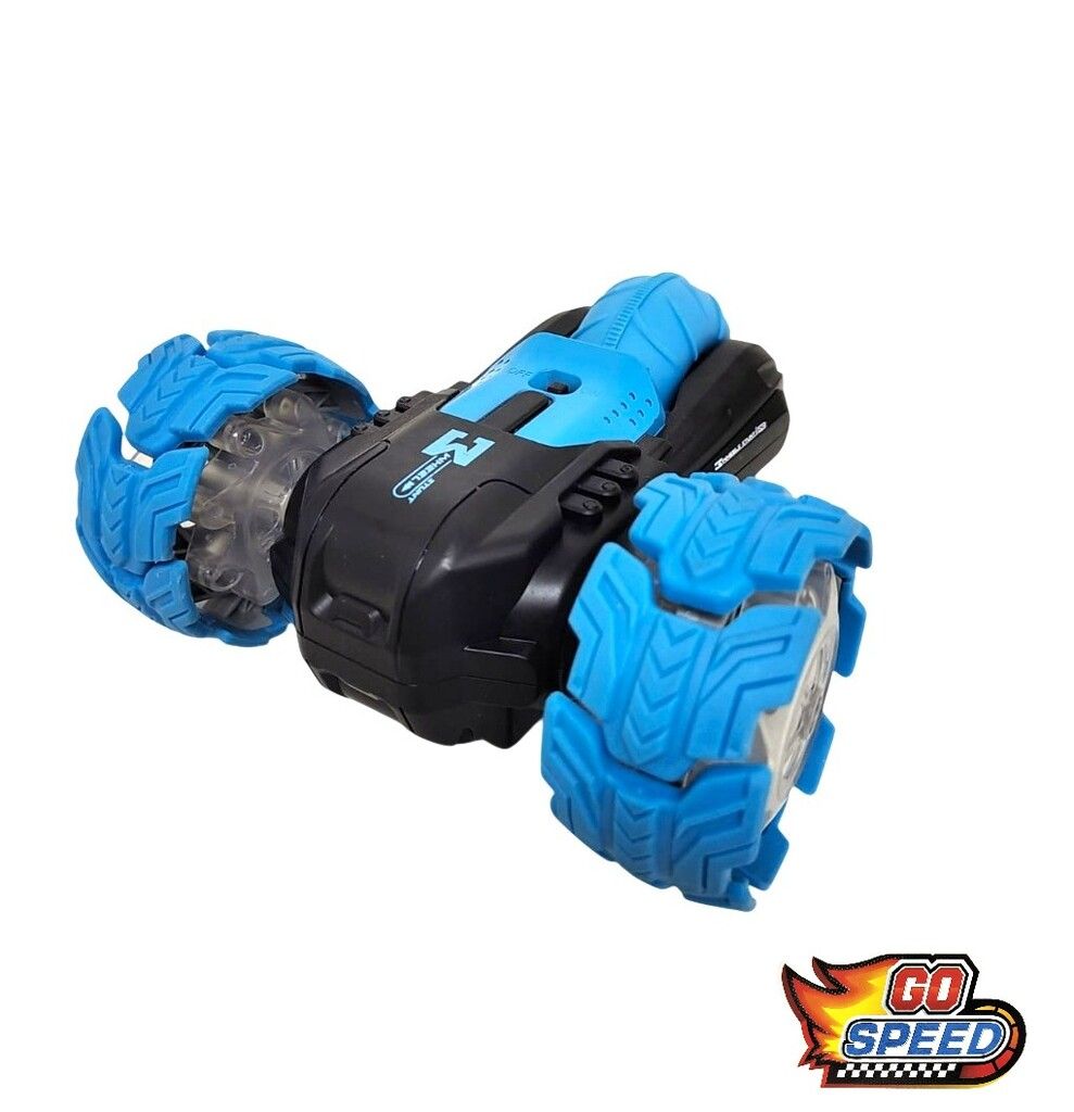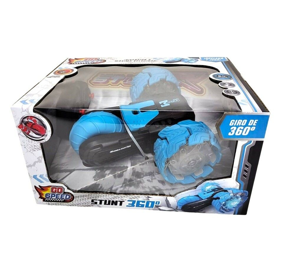 AUTO STUNT GIRA 360 GRADOS LAS RUEDAS TIENEN LUCES. EL AUTO PRECISA DE 3 PILAS AAA(NO INCLUIDAS). EL CONTROL PRECISA DE 2 PILAS AAA (NO INCLUIDAS). EL AUTO MIDE APROX. 18 CM DE LARGO X 7 CM DE ALTO. VIVI EL MUNDO DE LOS AUTOS GO SPEED
