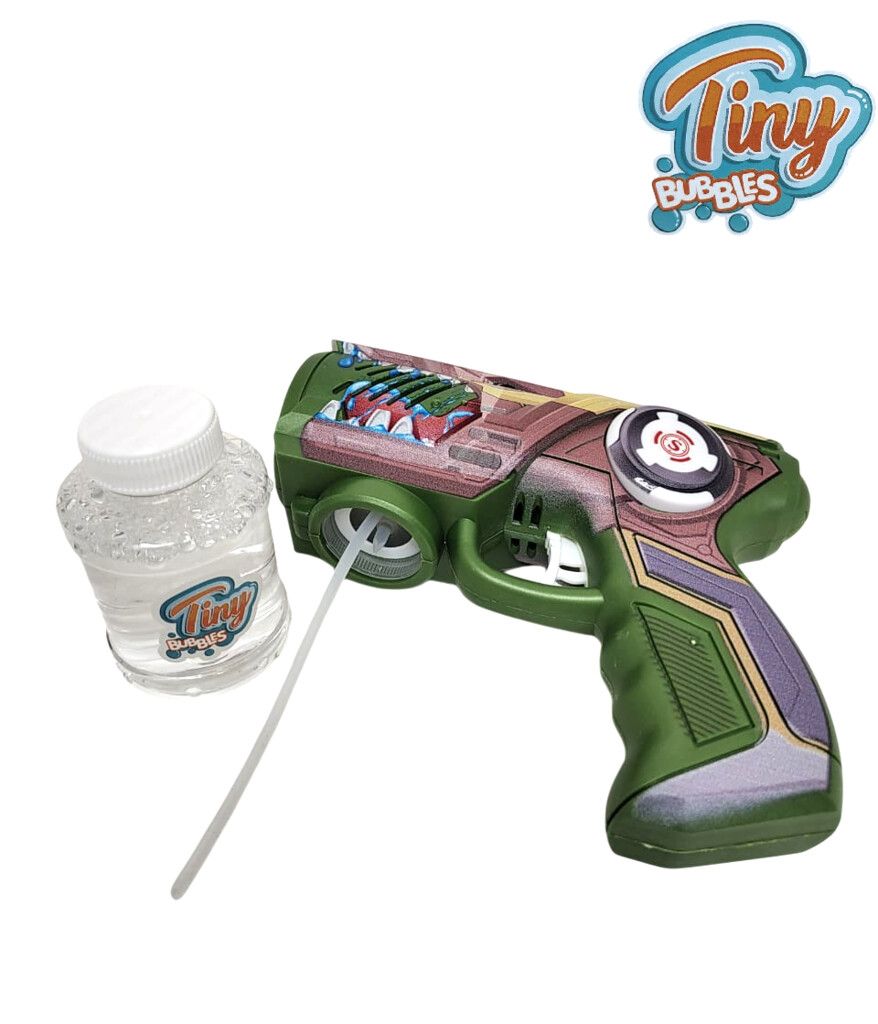 DIVERTITE CON EL BURBUJERO DE TINY BUBBLES. INCLUYE UN FRASQUITO DE SOLUCION DE BURBUJAS QUE TENES QUE INTEGRARLO AL BURBUJERO PARA PRODUCIR MUCHAS BURBUJAS. REQUIERE DE 2 PILAS AA(NO INCLUIDAS). MEDIDAS: 14X14CM APROX. MARCA: TINY BUBBLES. + 3 ANOS.