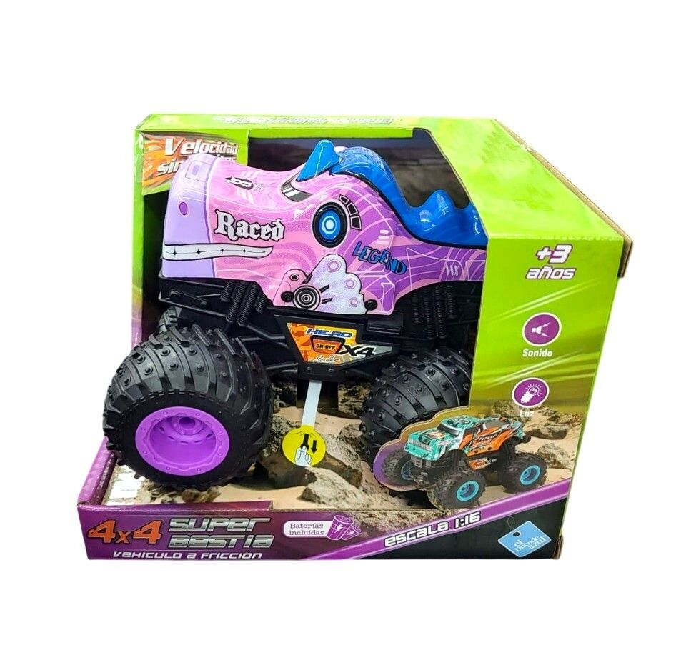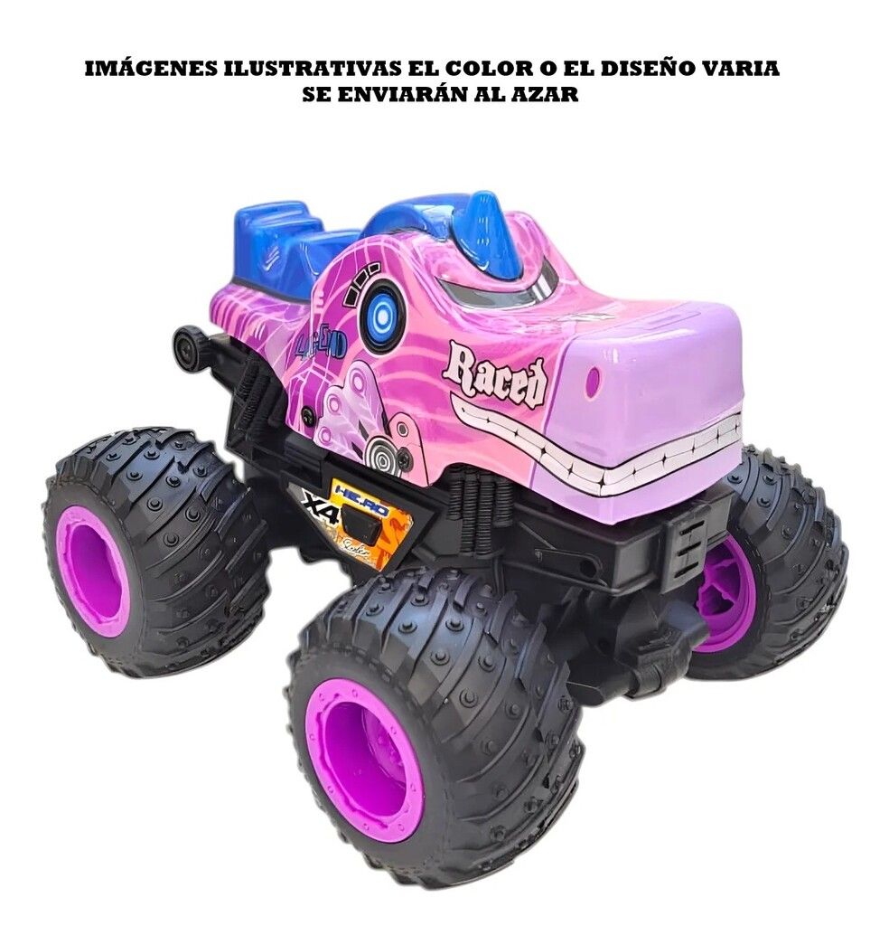 IMPORTANTE!!! EL COLOR O DISENO DE LA CAMIONETA VARIA SE ELIGE SOLO POR LA CARACTERISTICA MARCADA EN LA VARIANTE POR ENDE SE ENVIARAN AL AZAR SEGUN DISPONIBILIDAD. POTENCIA ACCION Y DIVERSION SE COMBINAN EN ESTA INCREIBLE MONSTER TRUCK A FRICCION CON LUZ Y SONIDO. SU DISENO ROBUSTO Y SUS GRANDES RUEDAS LA HACEN PERFECTA PARA QUIENES DISFRUTAN DE LOS JUEGOS CON ESTILO TODO TERRENO. SOLO IMPULSALA HACIA ATRAS Y MIRA COMO AVANZA CON FUERZA ACOMPANADA POR EFECTOS LUMINOSOS Y SONOROS QUE HACEN MAS REAL CADA MOVIMIENTO. CARACTERISTICAS PRINCIPALES: SISTEMA A FRICCION (NO REQUIERE CONTROL REMOTO) CON LUCES Y SONIDOS INTEGRADOS MEDIDAS: 17 CM DE LARGO X 16 CM DE ANCHO X 14 CM DE ALTO APROX. UTILIZA 4 PILAS TIPO BOTON (INCLUIDAS)