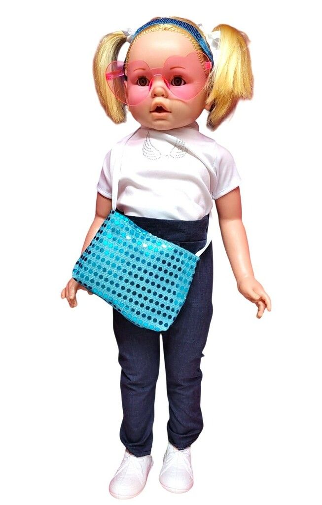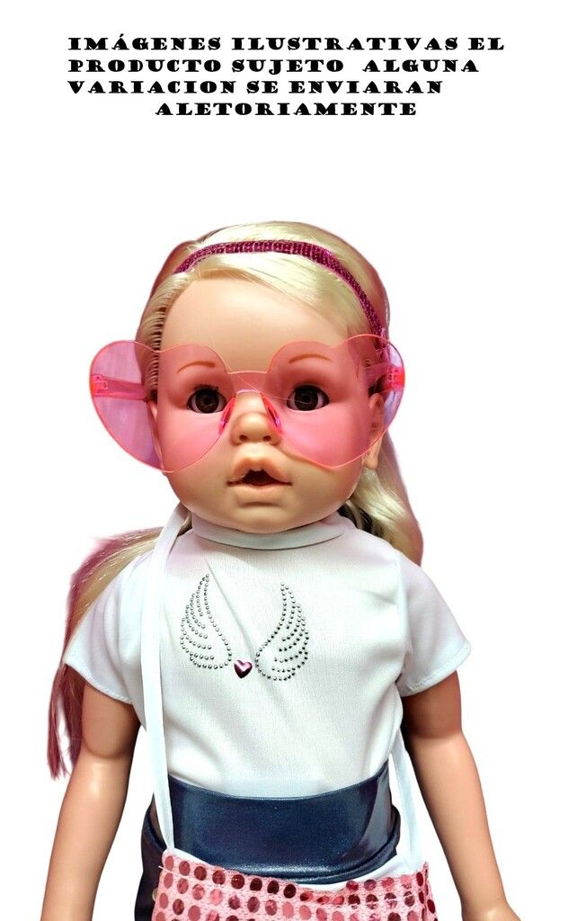 MUNECA JULIETA FASHION CON LENTES CARINITO DESCRIPCION DEL PRODUCTO – MINECA GIGANTE CON LENTES DE SOL CON DICE 6 FRASES DISTINTAS- – ERES LINDA! – DAME UN BESO! – TE QUIERO MUCHO! – JUEGA CONMIGO! – HOLA- COMO ESTAS? – LLEVAME CONTIGO – POSEE BRAZOS Y PIERNAS ARTICULADAS – MEDIDA DE LA CAJA- 80 CM Y DE LA MUNECA 73 CM – DIVERSOS COLORES DE VESTIMENTA IMPORTANTE!! EL PRODUCTO PUEDE VARIAR ALGO DE LO QUE SE PODRIA VER REALMENTE PORQUE VA A DEPENDER DEL TIPO DE PANTALLA QUE ESTE USANDO AL MOMENTO DE COMPRAR . – EDAD MINIMA RECOMENDADA- 3 ANOS