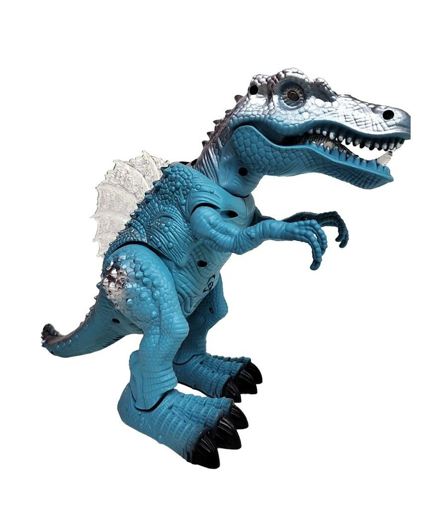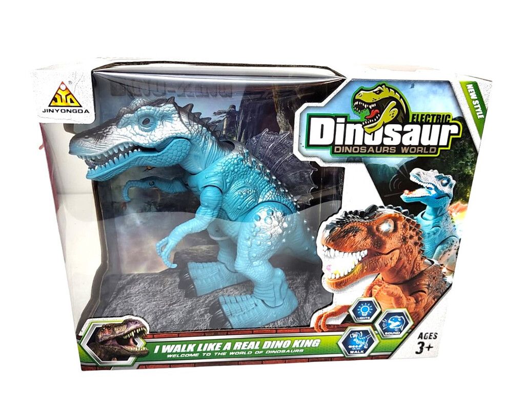 DINO CON LUZ SONIDO Y MOVIMIENTO. AL CAMINAR ENCIENDE LUZ LA BOCA OJOS Y LOMO LO QUE HACE QUEA MUY ATRACTIVO PATA LOS CHICOS. MIDE DE ALTO 22 CM Y DE LARGO 36 CM. UTILIZA 3 PILAS AA(NO INCLUIDAS).