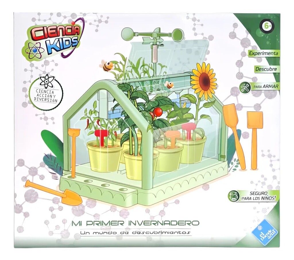 !CIENCIA ACCION Y DIVERSION EN UN SOLO JUEGO! DESCUBRI EL FASCINANTE MUNDO DE LA NATURALEZA Y LA CIENCIA CON MI PRIMER INVERNADERO DE CIENCIA KIDS. UN LABORATORIO VERDE DONDE LOS NINOS PUEDEN EXPERIMENTAR OBSERVAR Y APRENDER COMO CRECEN LAS PLANTAS DE UNA FORMA DIVERTIDA Y SEGURA. CARACTERISTICAS PRINCIPALES IDEAL PARA NINOS DE 6 ANOS EN ADELANTE. INCLUYE BRUJULA TERMOMETRO SISTEMA DE CULTIVO HIDROPONICO DEPOSITO DE AGUA DE RIEGO Y MARCADOR DE IDENTIFICACION. ESPACIOS ORGANIZADOS PARA LA UBICACION DE HERRAMIENTAS Y FACIL ACCESO. TRAE INSTRUCCIONES PASO A PASO PARA REALIZAR LAS EXPERIENCIAS. NO INCLUYE TIERRA. APRENDIZAJE Y DIVERSION ESTE SET ESTIMULA LA CURIOSIDAD CIENTIFICA Y ENSENA A CUIDAR EL MEDIO AMBIENTE FOMENTANDO EL AMOR POR LA NATURALEZA A TRAVES DEL JUEGO. MEDIDAS APROXIMADAS 34 X 9 X 39 CM (LARGO X ANCHO X ALTO)