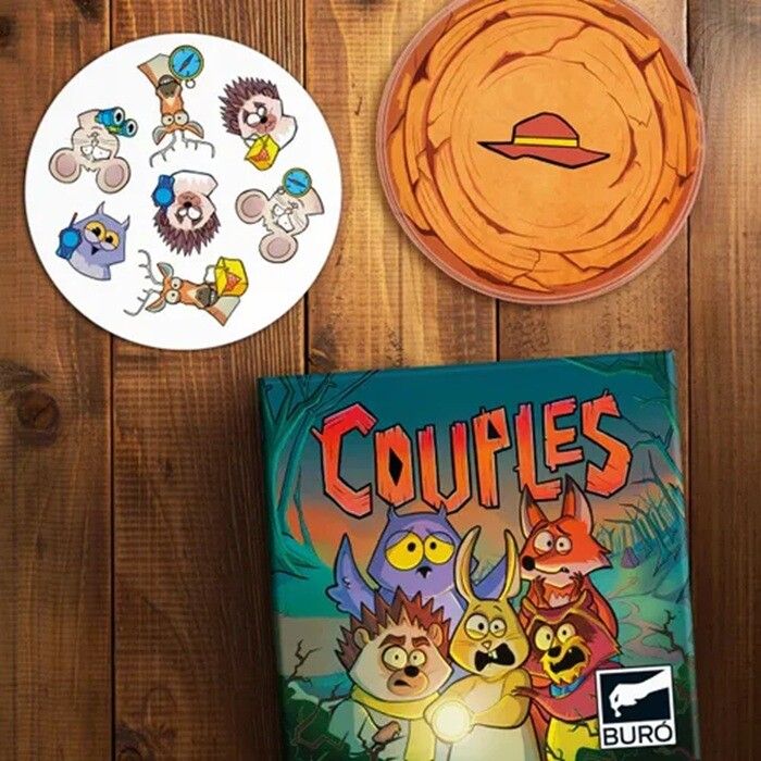 COUPLES ES UN JUEGO DE VELOCIDAD PARA TODA LA FAMILIA EN EL QUE TRATAS DE SER EL MAS RAPIDO ENCONTRANDO LOS ANIMALES O ACCESORIOS QUE NO TIENEN PAREJA. 3… 2… 1… !A JUGAR! MOSTRA UNA CARTA NUEVA Y MIRA LA PARTE DE ATRAS DE LA SIGUIENTE PARA SABER QUE BUSCAR (ANIMAL O ACCESORIO). !RAPIDO! ENCONTRA EL ANIMAL O EL ACCESORIO QUE ESTA SIN SU PAREJA Y TOCALO. !CUIDADO! EL TUMBACARPAS ESTA SUELTO. NO SEAS EL ULTIMO EN PONER LA MANO Y GRITA SU NOMBRE CUANDO APARECE. COUPLES ES UN JUEGO PARA TODOS EN EL QUE VAN A TENER QUE ESTAR MUY ATENTOS Y SER LOS MAS RAPIDOS DE LA MESA. – PARA 2 A 8 JUGADORES – PARA 6+ ANOS – DURACION: 20 MINUTOS