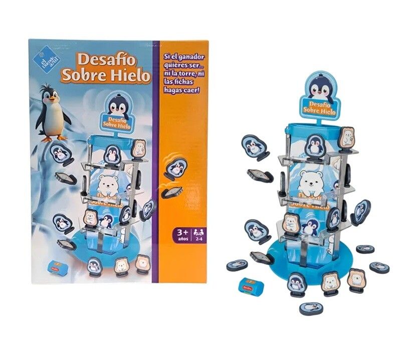 !DEMOSTRA TU HABILIDAD Y DESTREZA CON EL DIVERTIDO DESAFIO SOBRE HIELO DE EL DUENDE AZUL! UN EMOCIONANTE JUEGO DE EQUILIBRIO DONDE DEBERAS MANTENER LA TORRE ESTABLE Y EVITAR QUE LAS FICHAS CAIGAN. EL OBJETIVO ES SIMPLE: SI LA TORRE O LAS FICHAS CAEN PERDES LA PARTIDA. GANA QUIEN LOGRE MANTENER EL EQUILIBRIO POR MAS TIEMPO SIN HACER COLAPSAR LA ESTRUCTURA. !IDEAL PARA DESAFIAR A TUS AMIGOS Y COMPARTIR MOMENTOS LLENOS DE RISAS Y EMOCION! INCLUYE: 1 BASE 2 ESCALERAS 1 PLANCHA DE STICKERS 10 FICHAS DE PINGUINOS 10 FICHAS DE OSOS POLARES 1 TAPA 1 BANDERA 1 TUBO DE CARTON.