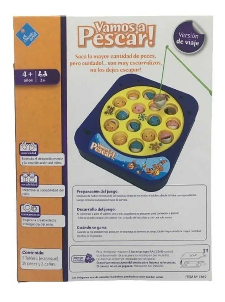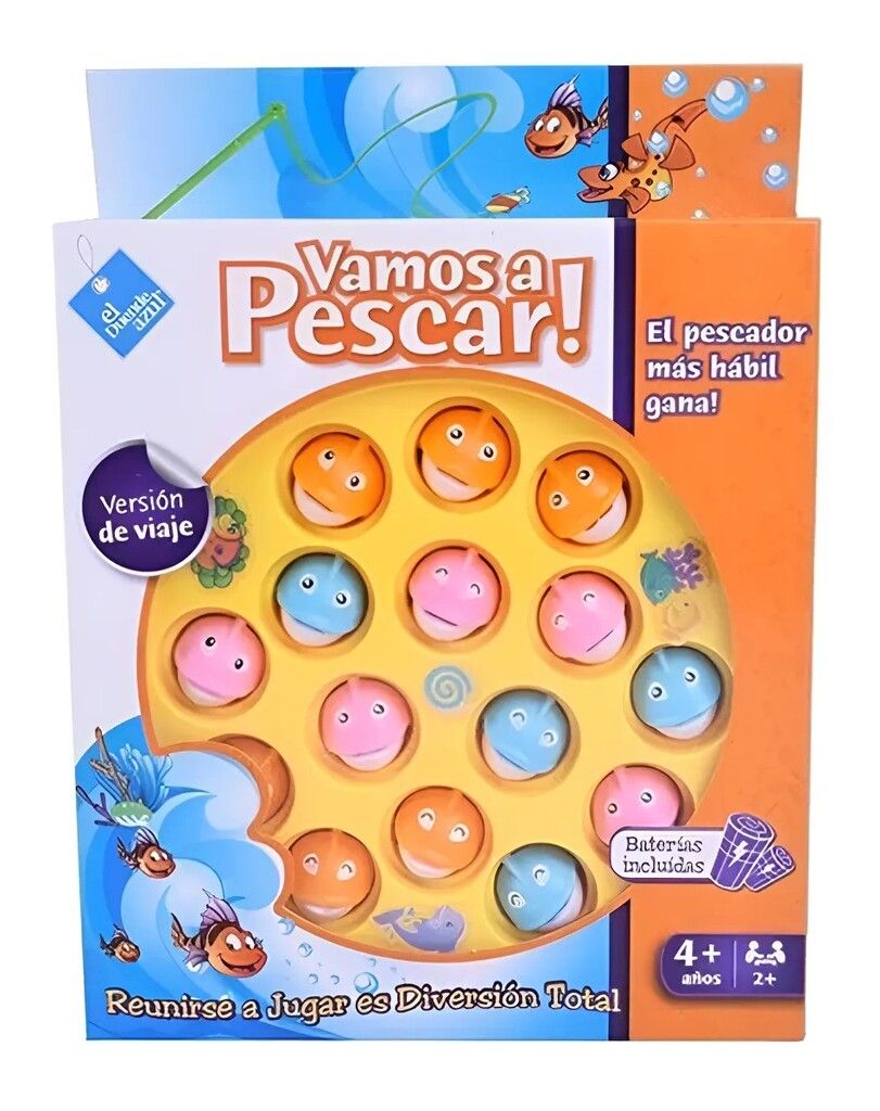 JUEGO DE MESA VAMOS A PESCAR CHICO DE VIAJE 18CM VAMOS A PESCAR EN SU VERSION VIAJERA – EL DUENDE AZUL SACA LA MAYOR CANTIDAD DE PECES- PERO CUIDADO!… SON MUY ESCURRIDIZOS- NO LOS DEJES ESCAPAR!! CONVIERTE EN EL MEJOR PESCADOR CON ESTE INCREIBLE JUEGO!! CONTENIDO- 1 TABLERO (ESTANQUE) 15 PECES 2 CANAS 2 PILAS AA