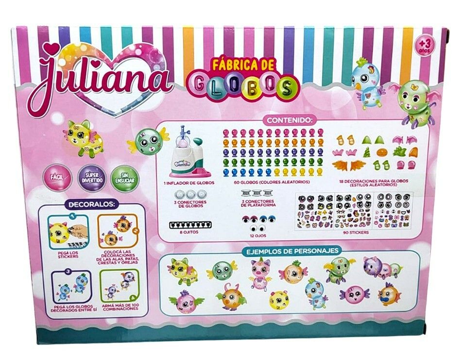 !DALES VIDA A TUS PERSONAJES MAS DIVERTIDOS! INFLA LOS GLOBOS UNILOS SIN PEGAMENTO DECORALOS Y ARMA TUS PROPIAS CREACIONES. !FACIL LIMPIO Y SUPER DIVERTIDO PARA JUGAR Y CREAR HISTORIAS SIN PARAR! INCLUYE: 1 INFLADOR DE GLOBOS 60 GLOBOS (COLORES ALEATORIOS) 18 DECORACIONES GLOBOS 3 CONECTORES DE GLOBOS 3 CONECTORES DE PLATAFORMA 8 OJITOS 12 OJOS 90 STICKERS. MEDIDAS DE LA CAJA : 24CM ALTURA X 30CM LARGO X 10CM ANCHO