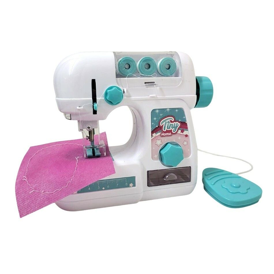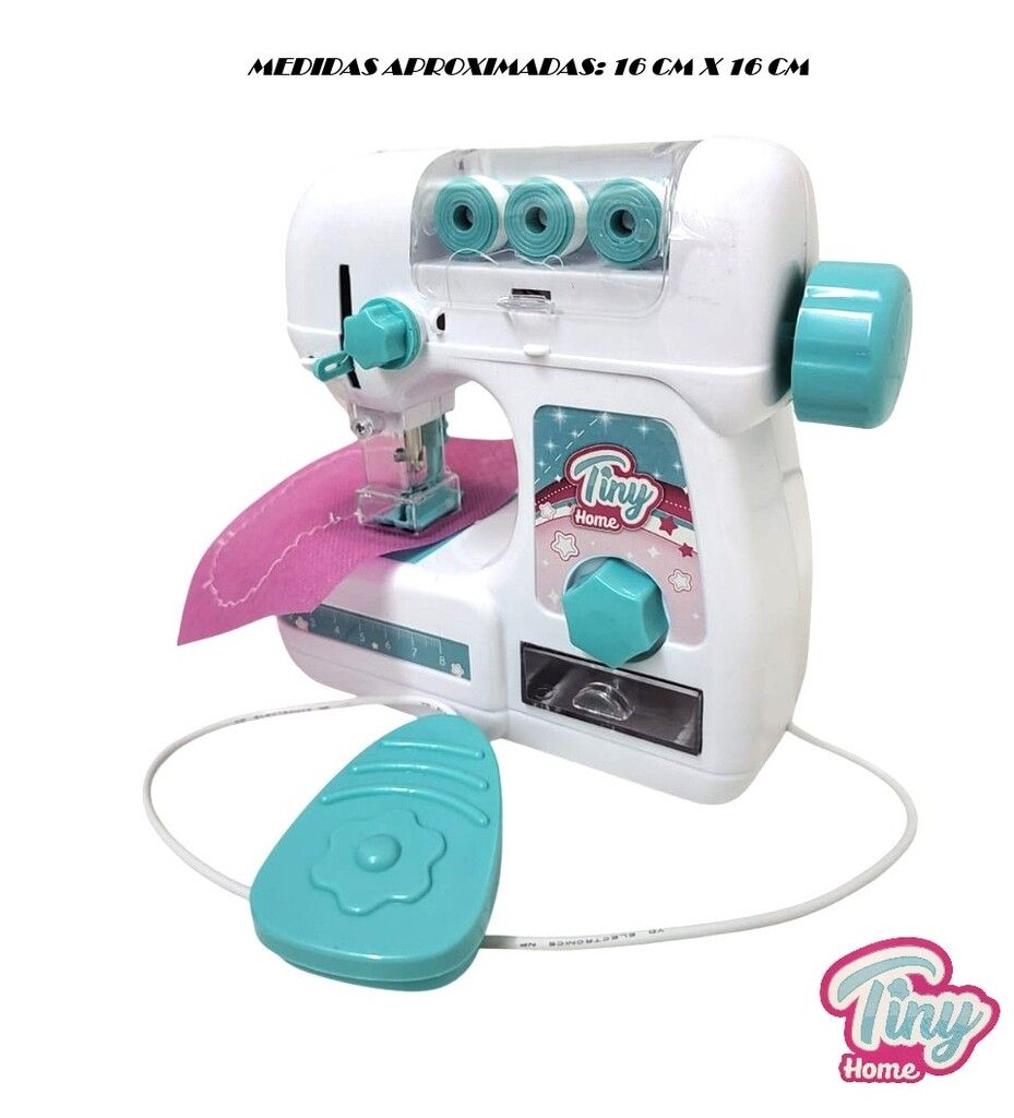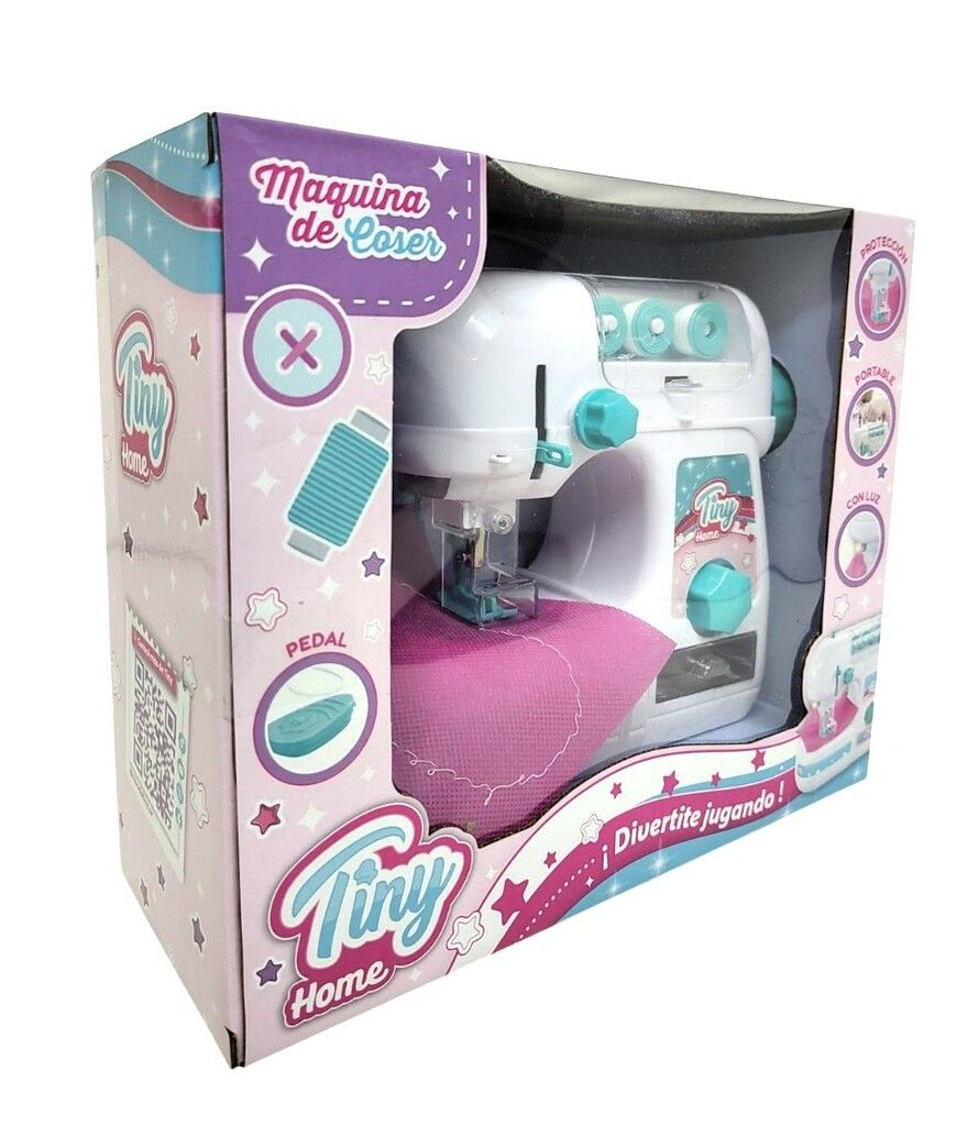 MAQUINA DE COSER DE JUGUETE TINY HOME. MIDE 16CMX16CM APROX. REQUIERE DE 3 PILAS AA (NO INCLUIDAS). TIENE LUZ ES PORTABLE Y TIENE PROTECCION PARA EVITAR ACCIDENTES. MARCA: TINY HOME. + 3 ANOS.