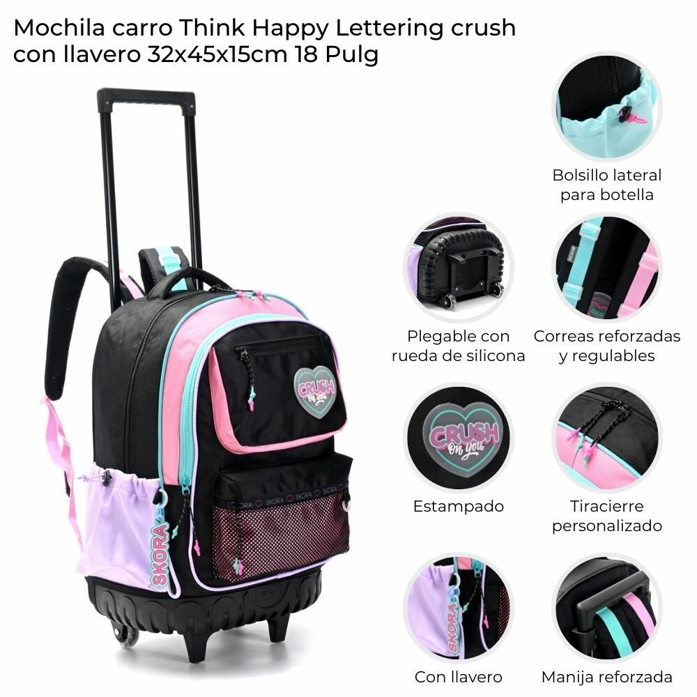 MOCHILA ESCOLAR 18 PULG THINK HAPPY LETTERING CRUSH COD 42889