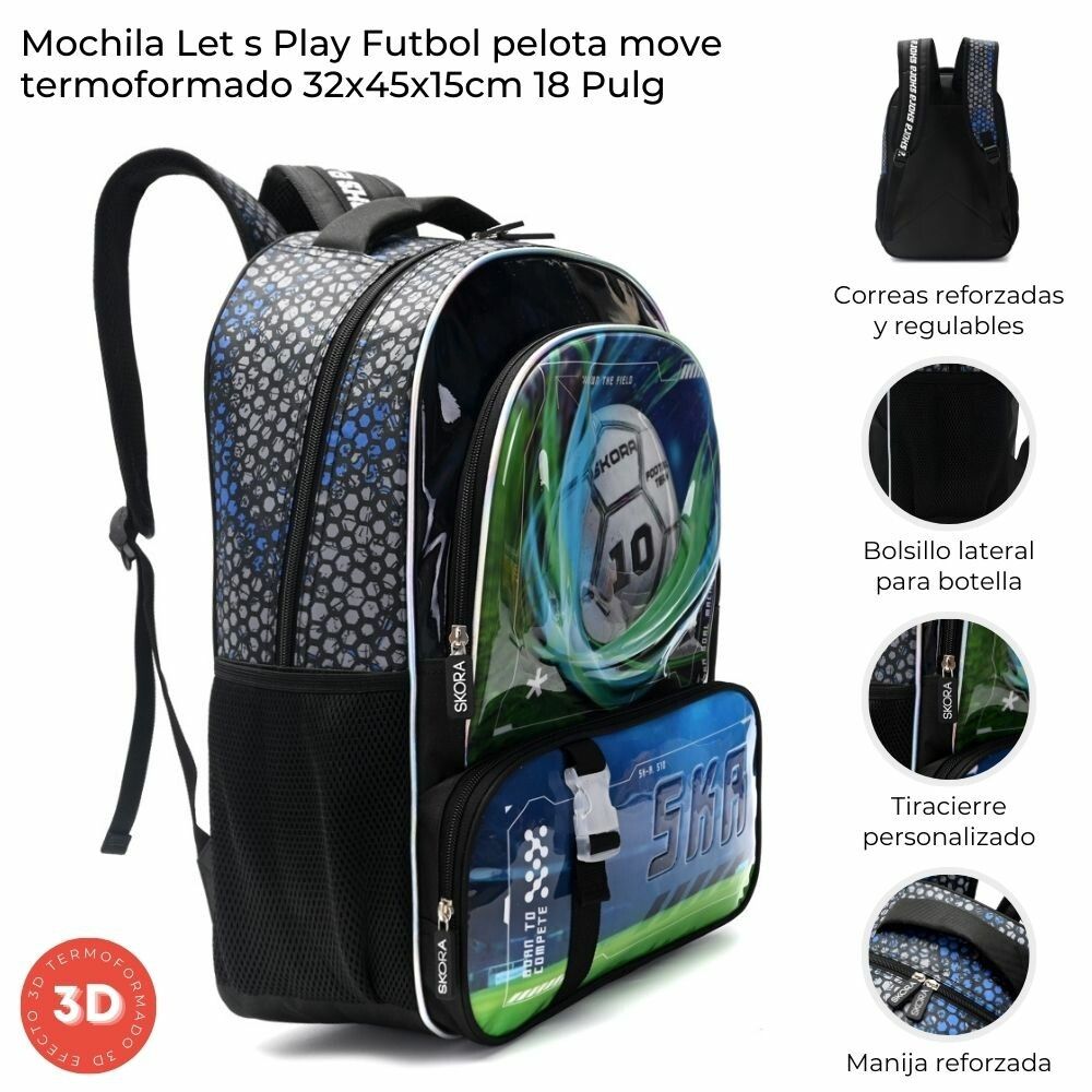 / MOCHILA ESCOLAR LETS PLAY FUTBOL PELOTA MOVE SKORA COD 42877