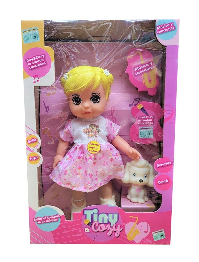 MUNECA CARINITO TINY COZY MUSICAL CON MASCOTA CANTA 3 CANCIONES LA MUNECA MIDE 30 CM DE ALTO APROX.