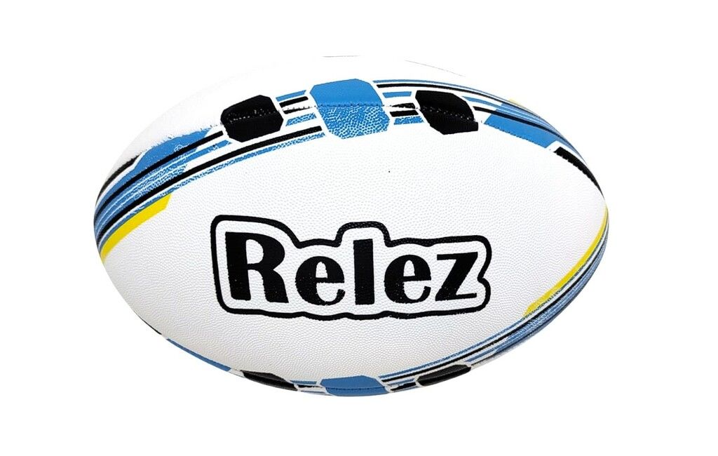 PELOTA DE RUGBY RELEZ N5 DE GOMA VR2 FT975 CELESTE Y AMARILLO
