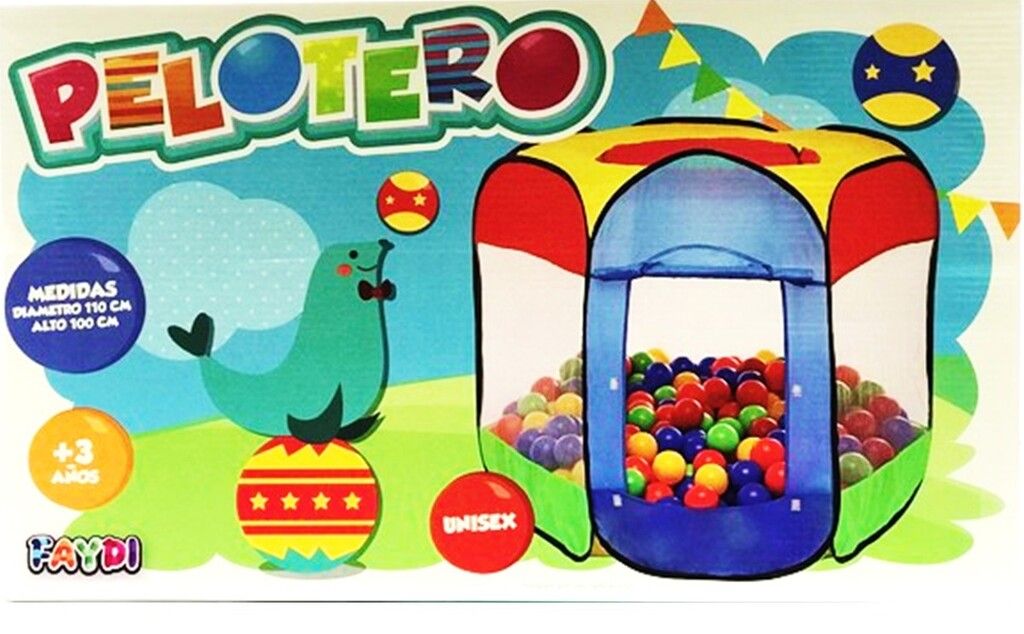 PELOTERO HEXAGONO FAYDI AUTO ARMABLE CONTIENE 75 PELOTITAS PLASTICAS LIVIANAS. MEDIDAS 110 CM DE DIAMETRO X 100 CM DE ALTO . PARA NINOS A PARTIR DE LOS 3 ANOS. UNISEX. TELA ATOXICA .