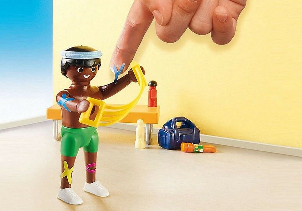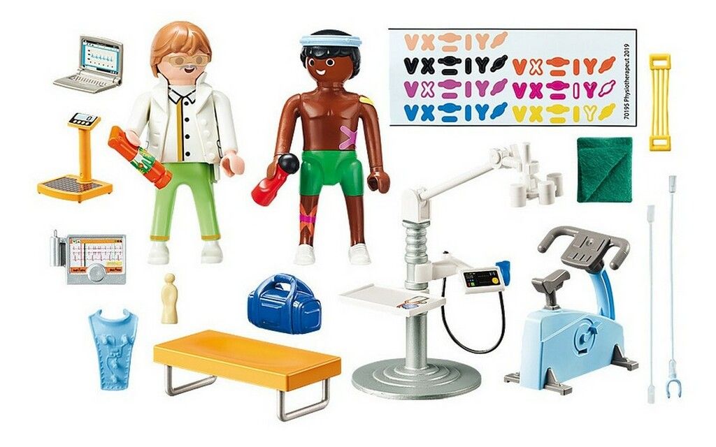 70195 SALA DE KINESIOLOGIA FISIOTERAPEUTA – CITY LIFE PLAYMOBIL EL KINESIOLOGO USA EL ECG DE EJERCICIO EN LA BICICLETA ESTATICA- PARA MEDIR EL RENDIMIENTO DEL PACIENTE. CON PEGATINAS DE CINTAS DE COLORES Y MUCHOS ACCESORIOS. 39 PIEZAS. DIMENSIONES- 7.2 X 14.2 X 18.7 CM APROX. EDAD RECOMENDADA- 4 ANOS EN ADELANTE.