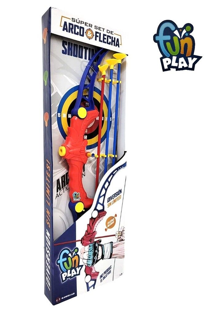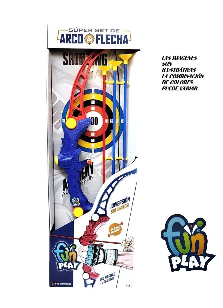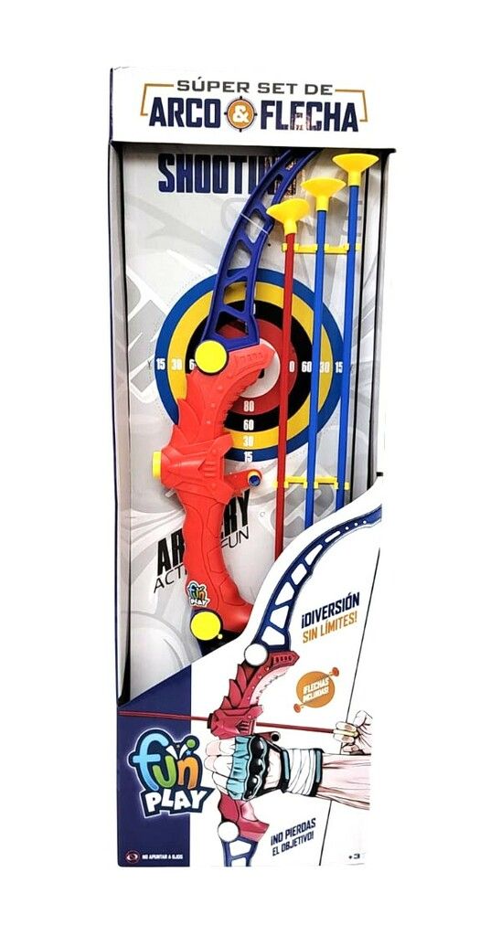 SET ARCO Y FLECHAS GRANDE. ESTE SET INCLUYE : ARCO 3 FLECHAS CON SOPAPA Y UN BLANCO DE CARTON . EL ARCO MIDE 60 CM DE ALTO APROX. LAS FLECHAS MIDEN 40 CM DE ALTO APROX. + 6 ANOS.