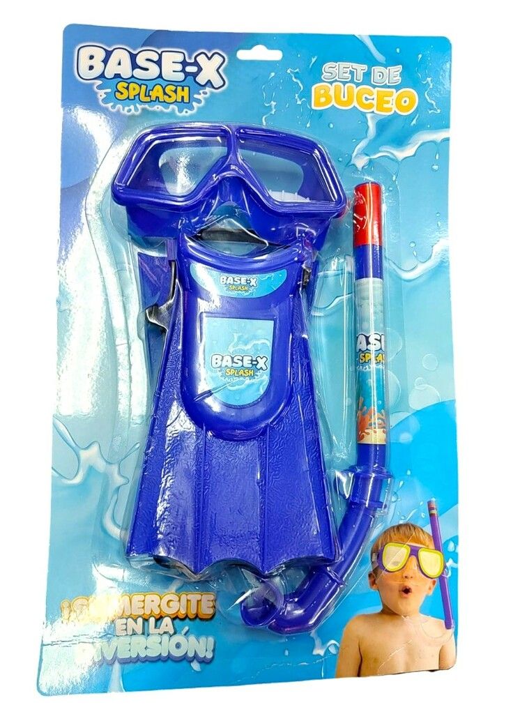CONTIENE: * MASCARA DE BUCEO CON EL TUBO. * 2 PATAS DE RANA. MARCA: BASE-SPLASH.