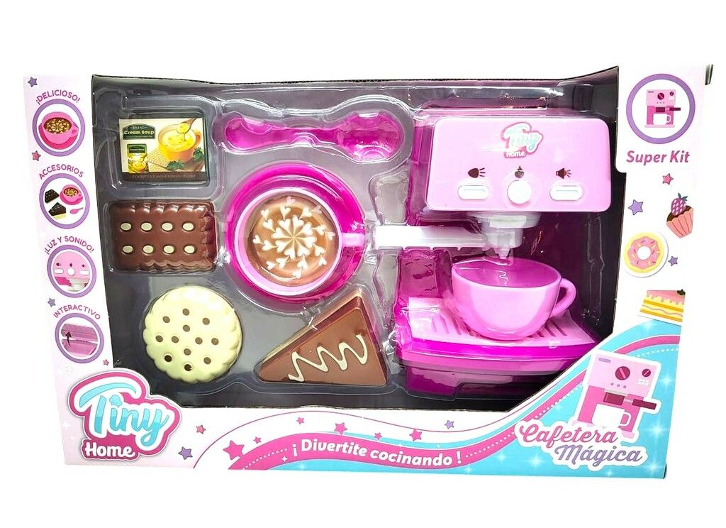 DIVERTITE CON ESTE INCREIBLE SET DE TINY HOME. LA CAFETERA ES A PILA TIENE LUZ Y SONIDO. INCLUYEN ACCESORIOS. MEDIDAS DEL PACKAGING:34X22X9CM MARCA: TINY HOME. + 3 ANOS.