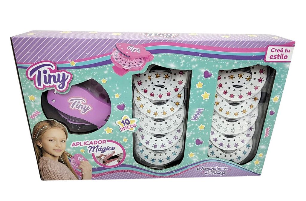DECORA TU PELO Y ACCESORIOS CON GEMAS BRILLANTES DE MANERA SUPER FACIL!! EL APLICADOR MAGICO TINY CONTIENE 10 DISCOS CON 15 GEMAS CADA UNO. AGREGALE BRILLO Y DIVERSION A TUS ACCESORIOS. MEDIDAS DE PACKAGING: 38 CM X 24 CM X 5 CM MEDIDAS DEL APLICADOR: 11 CM X 95 CM APROX. PARA GUARDAR BIEN EL APLICADOR CERRALO CON EL ELASTICO EL REGALO SORPRESA PUEDE SER UNA VARITA MAGICA O UNA CORONA O UN COLLAR Y UN ANILLO. EDAD RECOMENDADA: +3 ANOS. LAS IMAGENES Y COLORES SON A MODO ILUSTRATIVO PUEDEN VARIAR.
