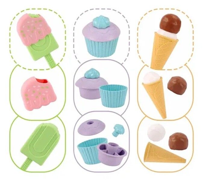SET DE HELADOS Y DULCES INFANTIL 21 PIEZAS ? EL DUENDE AZUL EL SET DE HELADOS Y DULCES INFANTIL ES PERFECTO PARA QUE LOS MAS CHICOS JUEGUEN A SER PEQUENOS REPOSTEROS DESARROLLANDO SU IMAGINACION MIENTRAS SE DIVIERTEN CREANDO POSTRES DE MENTIRA. CARACTERISTICAS PRINCIPALES: CONTIENE 21 PIEZAS MOVILES QUE PERMITEN ARMAR Y DESARMAR LOS POSTRES. INCLUYE CUCURUCHOS HELADOS Y DULCES PARA COMBINAR DE DISTINTAS MANERAS. ESTIMULA LA CREATIVIDAD LA COORDINACION Y EL JUEGO DE IMITACION. FABRICADO CON MATERIALES SEGUROS Y RESISTENTES. IDEAL PARA JUEGOS DE ROL SIMULANDO UNA HELADERIA DIVERTIDA. MARCA: EL DUENDE AZUL. EL SET DE HELADOS Y DULCES 21 PIEZAS ES UN REGALO IDEAL PARA FOMENTAR EL JUEGO CREATIVO Y SIMBOLICO EN LOS NINOS.