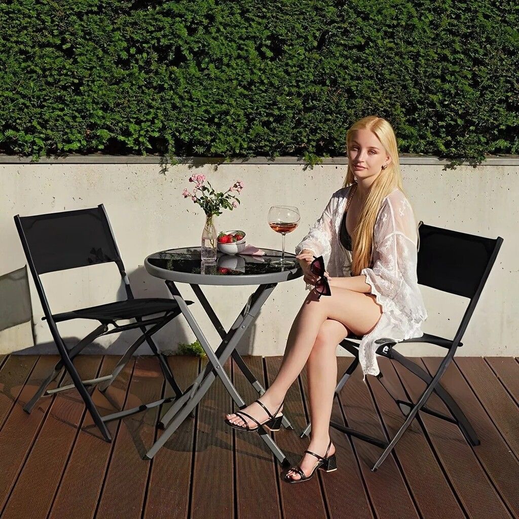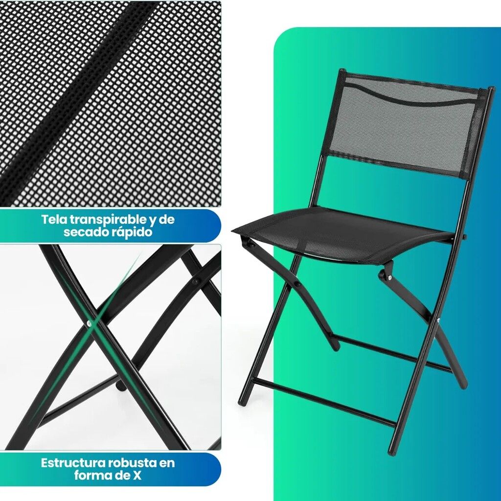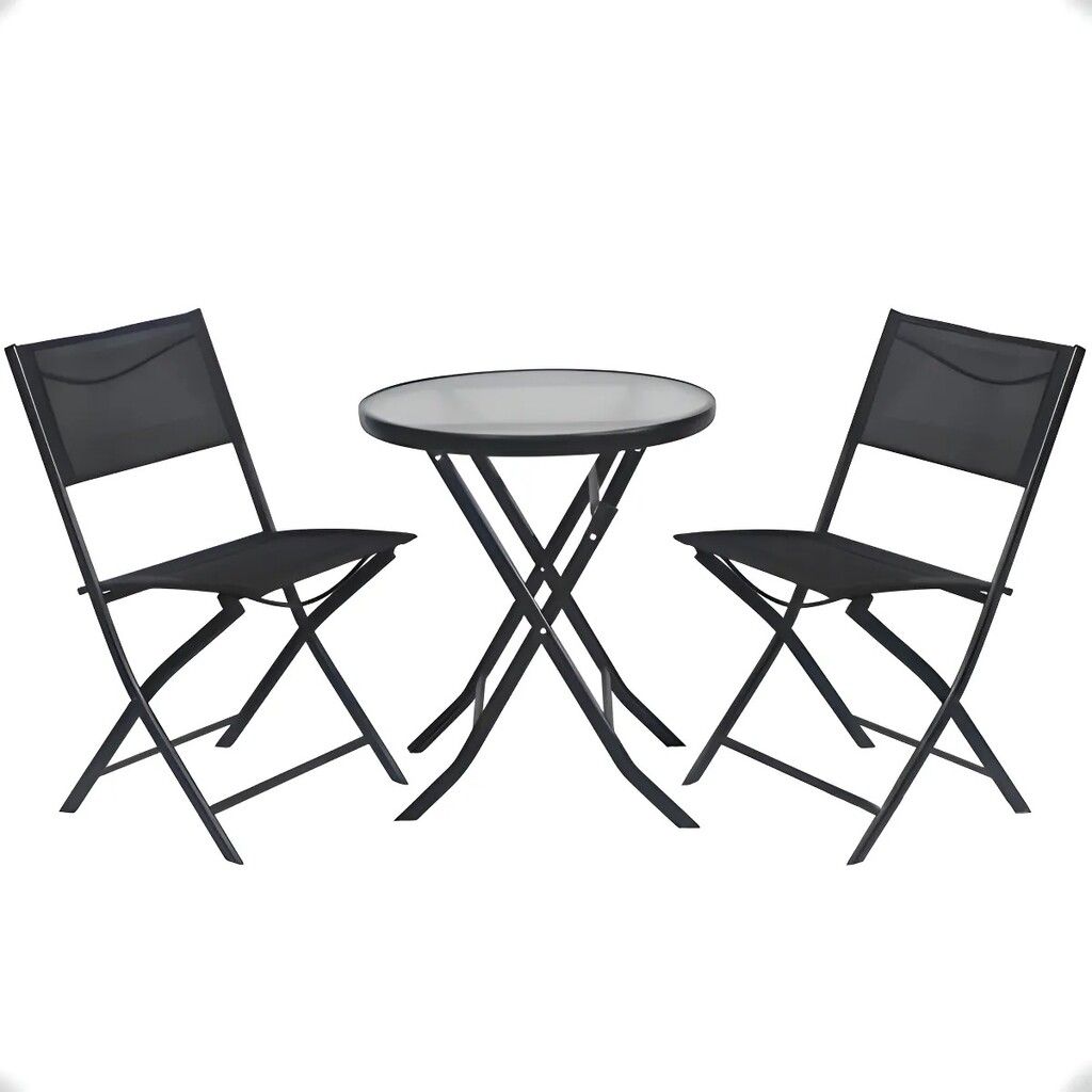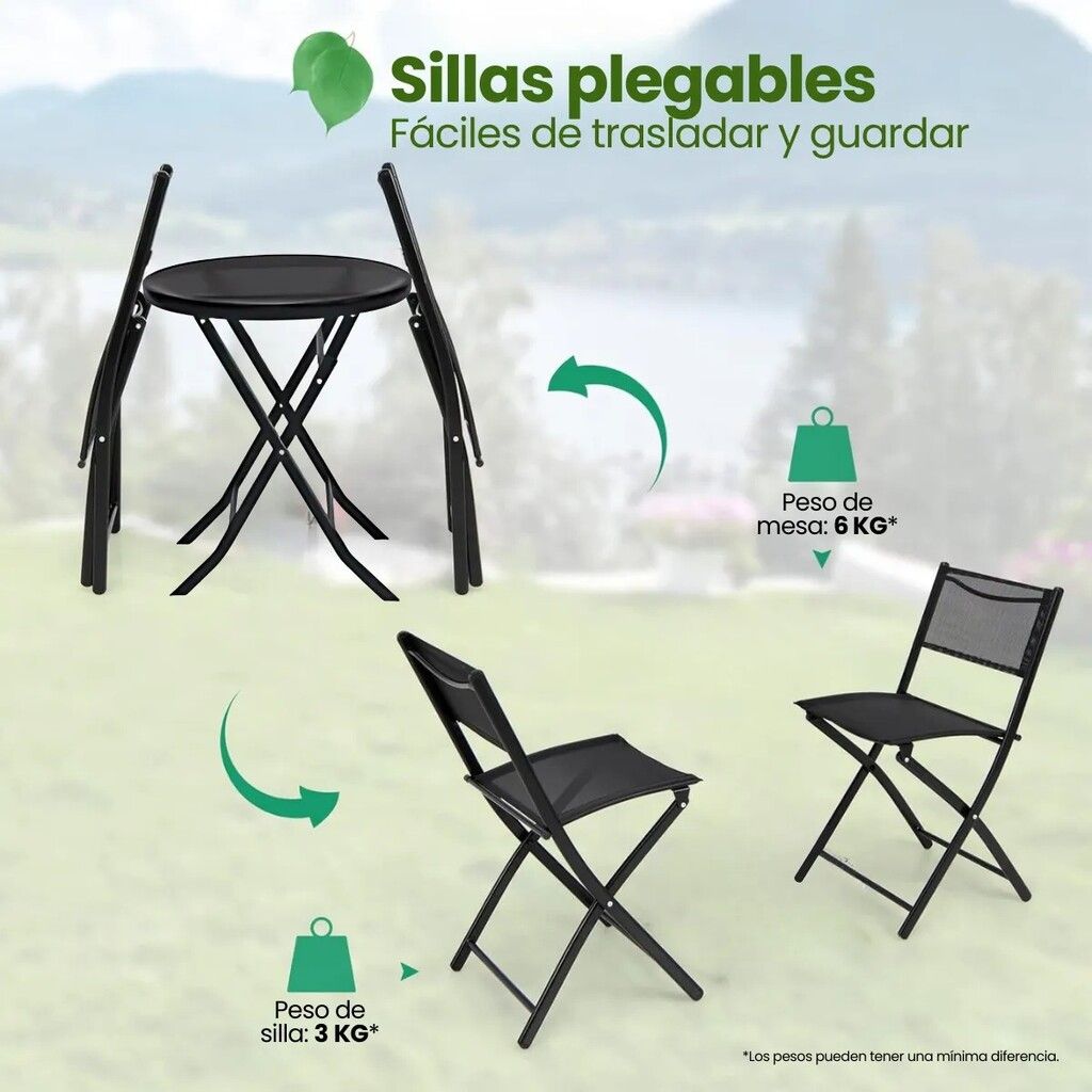 DESCUBRE EL ‘JUEGO DE MESA PLEGABLE Y DOS SILLAS PLEGABLES ULTRA COMPACTO Y LIVIANO’ UN SET COMPLETO IDEAL PARA ESPACIOS REDUCIDOS COMO DEPARTAMENTOS O BALCONES. ESTE CONJUNTO DE 3 PIEZAS INCLUYE UNA MESA DE VIDRIO TEMPLADO Y DOS SILLAS METALICAS CON UN ELEGANTE TAPIZADO DE TEJIDO SINTETICO PLASTICO QUE NO SOLO OFRECEN COMODIDAD SINO TAMBIEN UN DISENO MODERNO. LAS SILLAS SON PLEGABLES LO QUE PERMITE UN ALMACENAMIENTO EFICIENTE Y OCUPA MUY POCO ESPACIO. CON UNA CAPACIDAD DE PESO MAXIMO SOPORTADO DE 120 KG ESTE JUEGO ES ROBUSTO Y DURADERO. LA MESA TIENE UN DIAMETRO DE 60 CM Y UNA ALTURA DE 70 CM MIENTRAS QUE LAS SILLAS AL ABRIRSE MIDEN 79 X 45 X 45 CM. FABRICADO CON MATERIALES DE ALTA CALIDAD ESTE SET ES PERFECTO PARA DISFRUTAR DE MOMENTOS AL AIRE LIBRE EN CUALQUIER RINCON DE TU HOGAR.