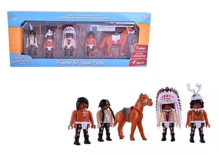 MUNECOS X5 INDIAN COWBOYS LA AVENTURA COMIENZA ESTOS GRANDES GUERREROS INDIOS ESTAN LISTOS PARA EL COMBATE SUS ARMAS SON LETALES EN LA BATALLA!! MIDEN 7 CM DE ALTO