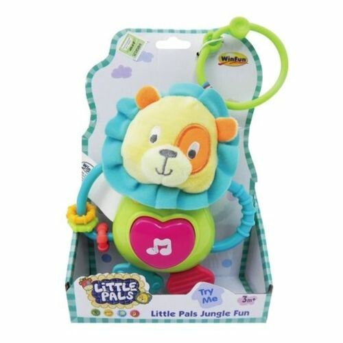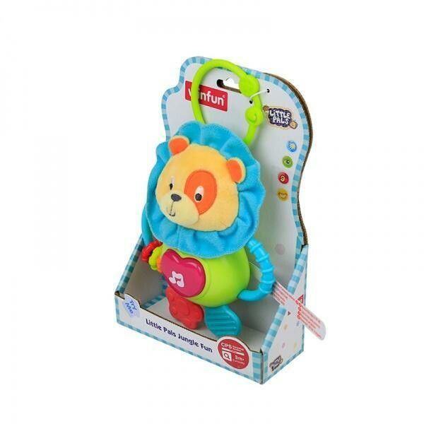 ES UN PELUCHE EN FORMA DE LEON QUE INCLUYE DIFERENTES FUNCIONES PARA ESTIMULAR LOS SENTIDOS DEL BEBE APRETANDO EN SU BARRIGUITA CON FORMA DE CORAZON SONARAN DIFERENTES MELODIAS Y LUZ VIENE CON AGARRADOR Y MORDEDORES QUE FACILITAN EL MANEJO DEL BEBE Y FOMENTA SU DESARROLLO Y CRECIMIENTO SENSORIAL EDAD: + 3 MESES