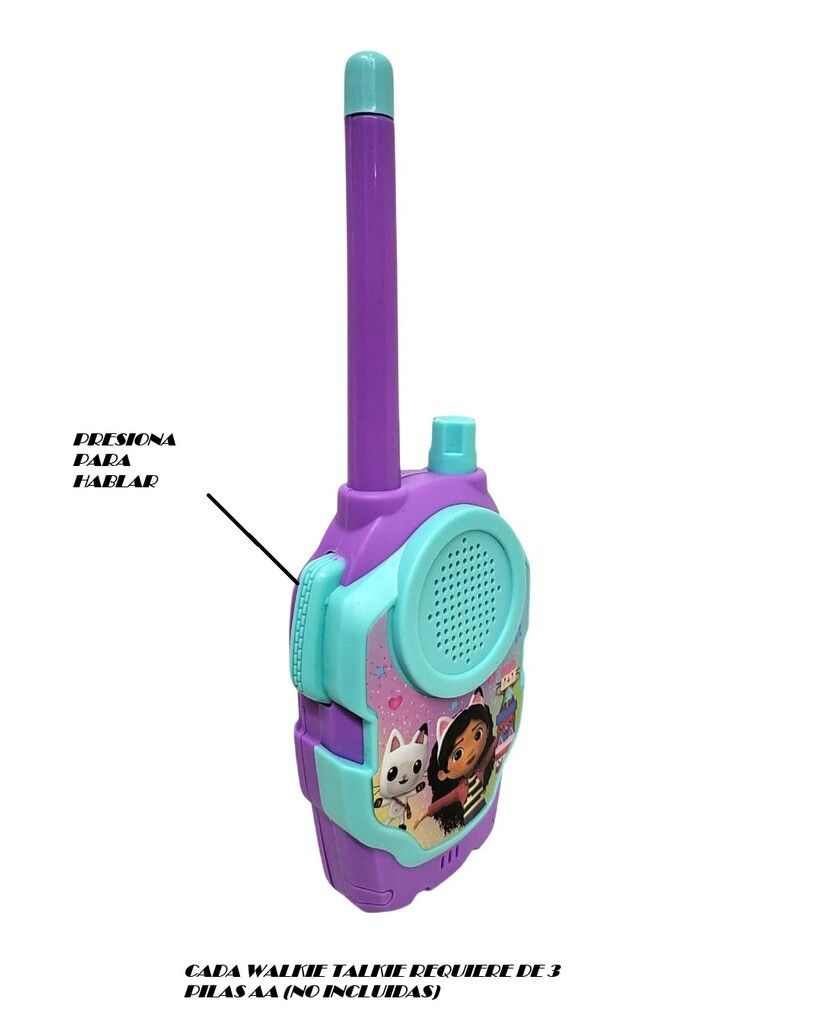 CARACTERISTICAS: – PARA HABLAR CON TUS AMIGOS – CADA WALKIE TALKIE USA 3 PILAS AA (NO INCLUIDAS) PARA USAR EN INTERIORES . ALCANCE APROX ENTRE 15 A 20 MTS.