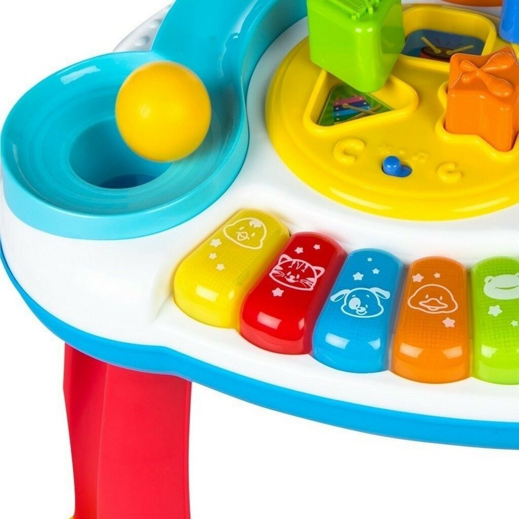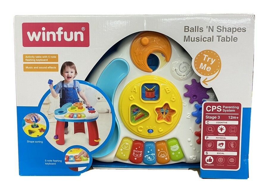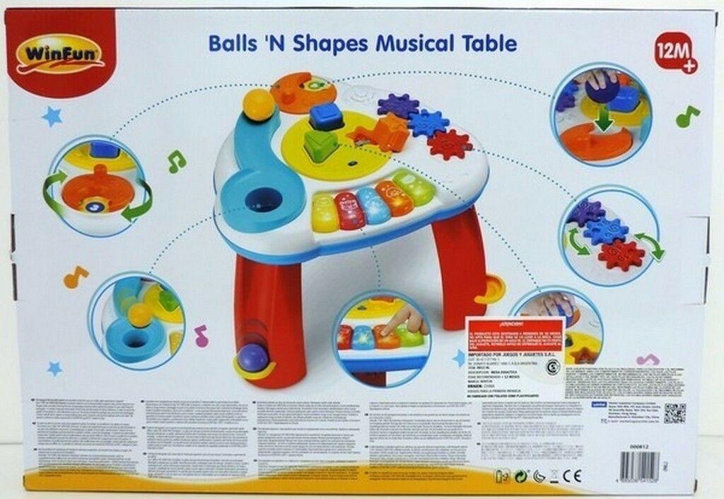 NOS LLEGO PARA LOS MAS PEQUES LA MESA DE ACTIVIDADES MUSICAL- ORIGINAL DE WINFUN ALIENTA EL DESCUBRIMIENTO Y LA EXPLORACION- ENSENA CAUSA Y EFECTO CONFECCIONADO EN MATERIALES RESISTENTES- DE GRAN CALIDAD- DURACION Y VIDA UTIL- ADEMAS DE QUE ESTAN COMPLETAMENTE LIBRES DE TOXINAS LA MESA DE ACTIVIDADES PRESENTA JUEGOS DE ENCAJE DE PIEZAS CIRCULARES- TRIANGULARES- CUADRADAS Y DE ENCAJAR PELOTAS. PIANO DE 5 TECLAS CON SONIDOS DE ANIMALES Y DIFERENTES MELODIAS. JUGUETE QUE DESARROLLA LAS HABILIDADES MOTORAS- LA DESTREZA Y LA IMAGINACION CONTIENE 2 MODALIDADES DE JUEGO- LA MODALIDAD MUSICA/LA MODALIDAD EFECTOS DE SONIDO VIENE CON 3 BOLAS DE COLORES Y 3 FORMAS- QUE DEBEN SER ENCASTRADAS EN SUS RESPECTIVOS LUGARES DEL TABLERO. INCLUYE ADEMAS UN MARTILLO- CON EL QUE PODRA GOLPEAR LOS BOTOS QUE SE ENCUENTRAN EN EL CENTRO PATAS DESMONTABLES QUE PERMITEN CAMBIAR LA MESA DE ACTIVIDADES EN JUGUETE PARA USO EN EL SUELO CONTIENE 3 PILAS AAA (INCLUIDAS) MIDE 39X37X35 CM APROX EDAD A PARTIR DE 1 ANO